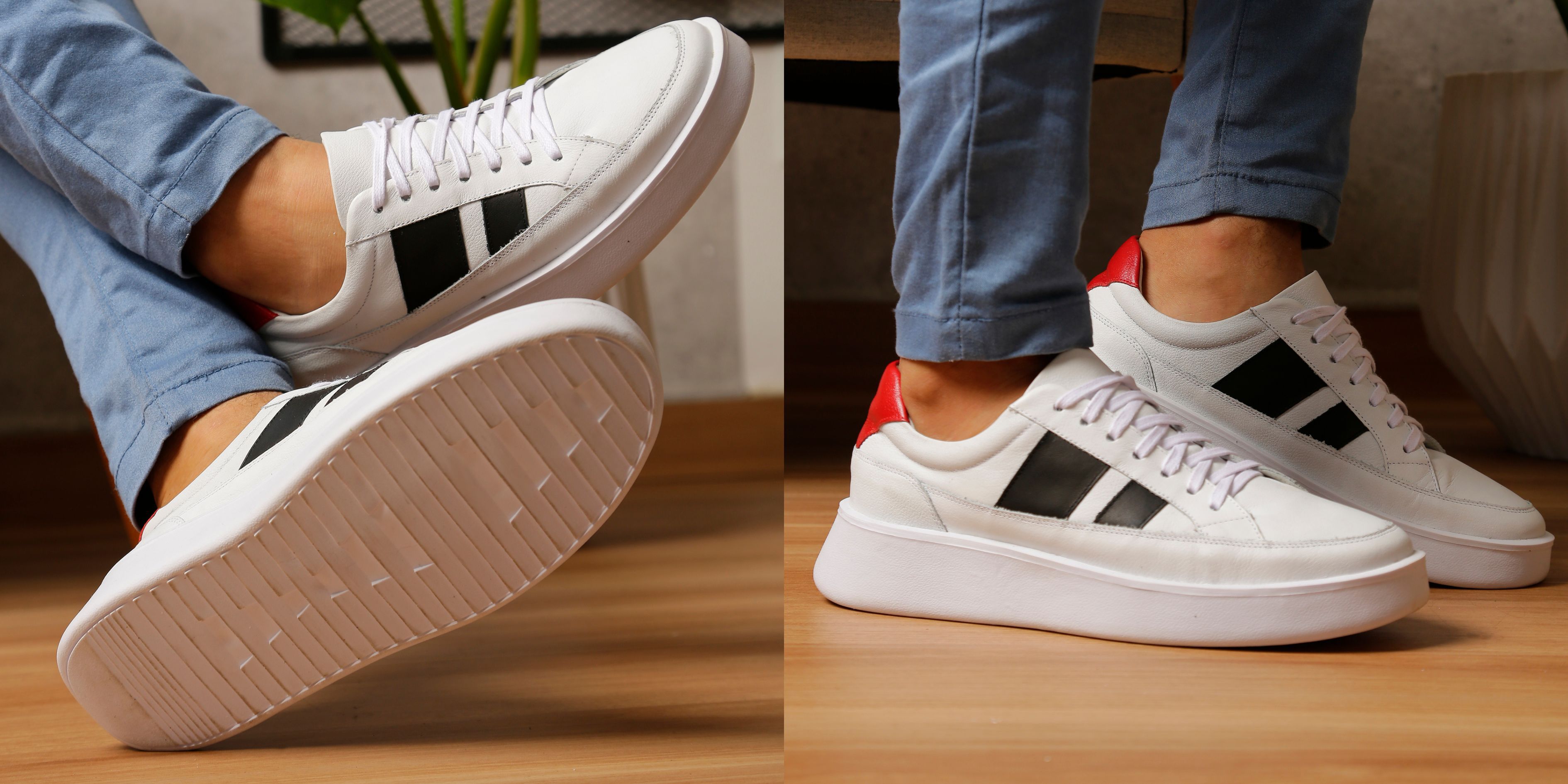 Tenis Masculino Confort Branco-Preto-Vermelho Port...